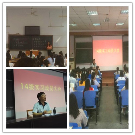 时光匆匆,转眼间我院首届2014级专科学生顺利完成为期两年的专业理论学习。按照教学安排,我院本科2013级护理和专科2014级护理、助产专业371名学生将于近日分组奔赴实习医院,开始长达九个月的实习生涯。在这启程的时刻,我院领导老师专门组织召开实习动员会,特别强调安全纪律,为同学们送上美好祝福。