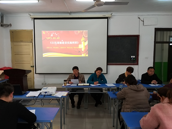 为进一步学习贯彻落实《公民道德实施纲要》,坚持以社会主义核心价值观为引领,以加强社会公德、职业道德、家庭美德、个人品德建设教育为根本,以培育良好社会风尚为目标,推进“立德树人”的宗旨在学院落地生根、开花结果,提供道德力量,3月19日,医学院组织教职工在学院218会议室学习《公民道德建设实施纲要》,用模范人物张玉滚、李芳等的先进事迹,教育学院教职工,使教职工了解了公民道德建设的重要性、要求和意义。