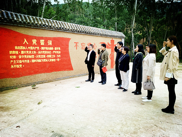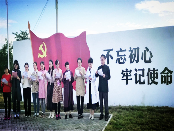 10月8日下午,医学院教工一支部全体党员赴抗日活动根据地焦作市东矾厂村开展了“弘扬革命精神,坚定理想信念”主题党日活动。活动分三个环节:全体党员在党旗下重温入党誓词,追寻入党初心,坚定践行入党誓言;全体党员深情朗诵诗歌《我的祖国》,表达对祖国的热爱及祝福;支部党员参观村中历史遗迹,感受抗战精神,体验新农村变化,以革命精神激励自己不断前行。