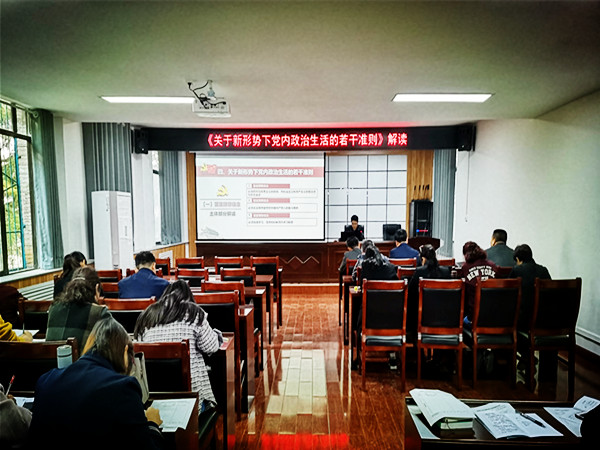 陈留根副教授首先强调了《关于新形势下党内政治生活的若干准则》在党的建设中的重要作用,并进一步讲解了《准则》制定的主要原因、基本原则、重要内容,以及如何学好准则、约束行为、指导实践。紧接着陈老师分析新形势下党内政治生活仍然存在的一些问题,并启发大家思考如何以准则为指导探索目前存在突出问题的解决之道。最后强调,工厂党员要认真学习领会《准则》的精神实质,不断提高思想认识,自觉遵守党的纪律,在思想和行动上同以习近平同志为核心的党中央保持高度一致,身先垂范,教书育人,为党和国家培养出具有共产主义理想信念的建设者和接班人发挥应有的作用。