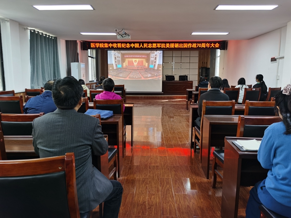 10月23日上午10时,纪念中国人民志愿军抗美援朝出国作战70周年大会在北京人民大会堂隆重举行。中共中央总书记、国家主席、中央军委主席习近平出席大会并发表重要讲话。医学院组织师生代表观看纪念大会直播。