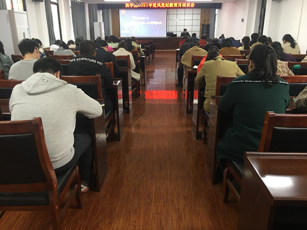 为认真学习贯彻十九届中央纪委五次全会、十届省纪委六次全会精神,以党史学习教育促廉洁,推动全面从严治党、党风廉政建设和反腐败斗争向纵深发展,4月6日下午,学院在317会议室召开党风党纪教育月活动动员大会,会议由党委书记余本胜主持,全体教职工参加。