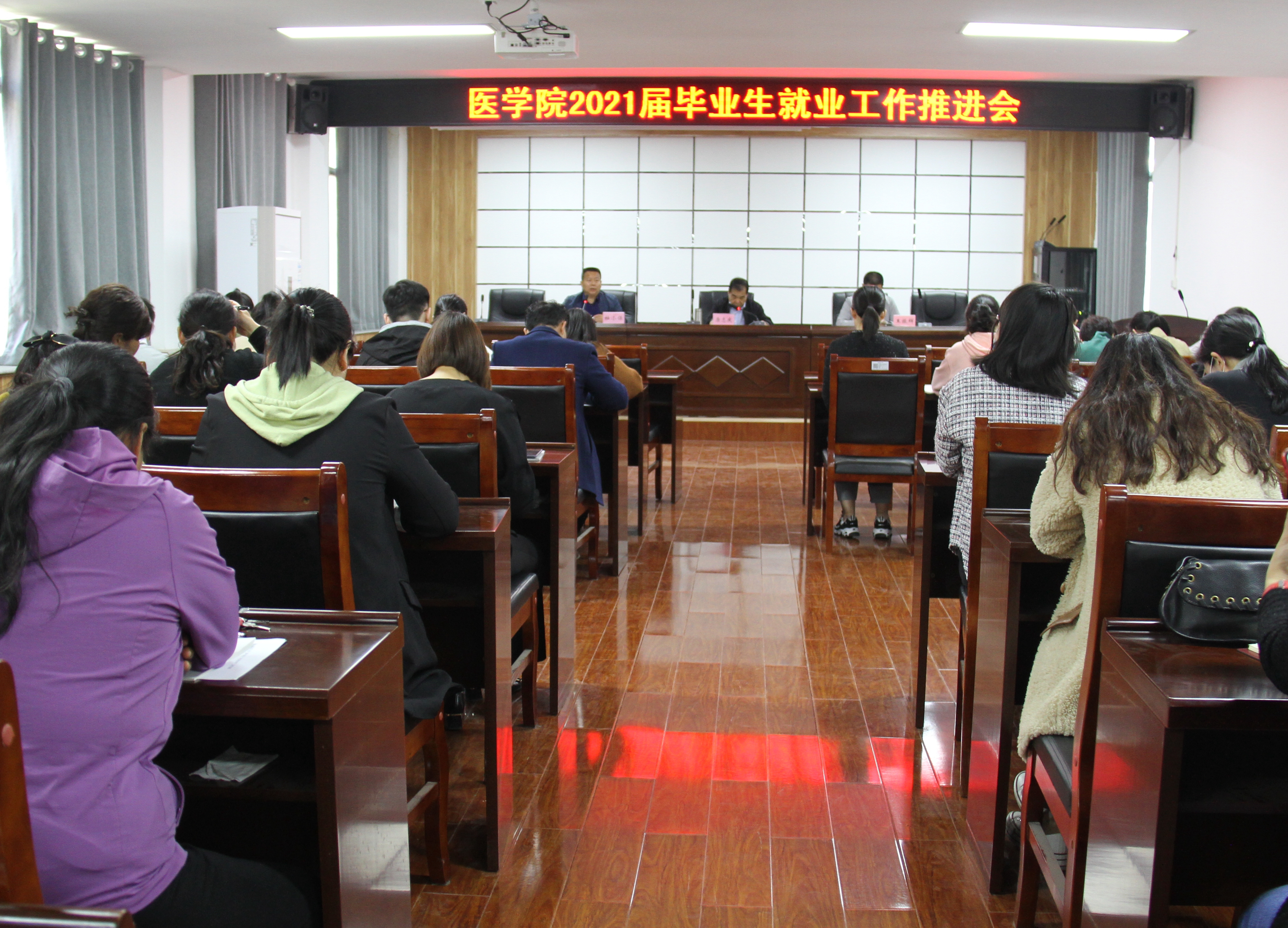 4月27日下午,我院在学院楼三楼会议室召开2021届毕业生就业工作推进会,正式启动医学院2021届毕业生“就业帮扶季”工作计划。学院执行院长原志庆、党委副书记杜小保出席会议,副院长王振辉主持会议。