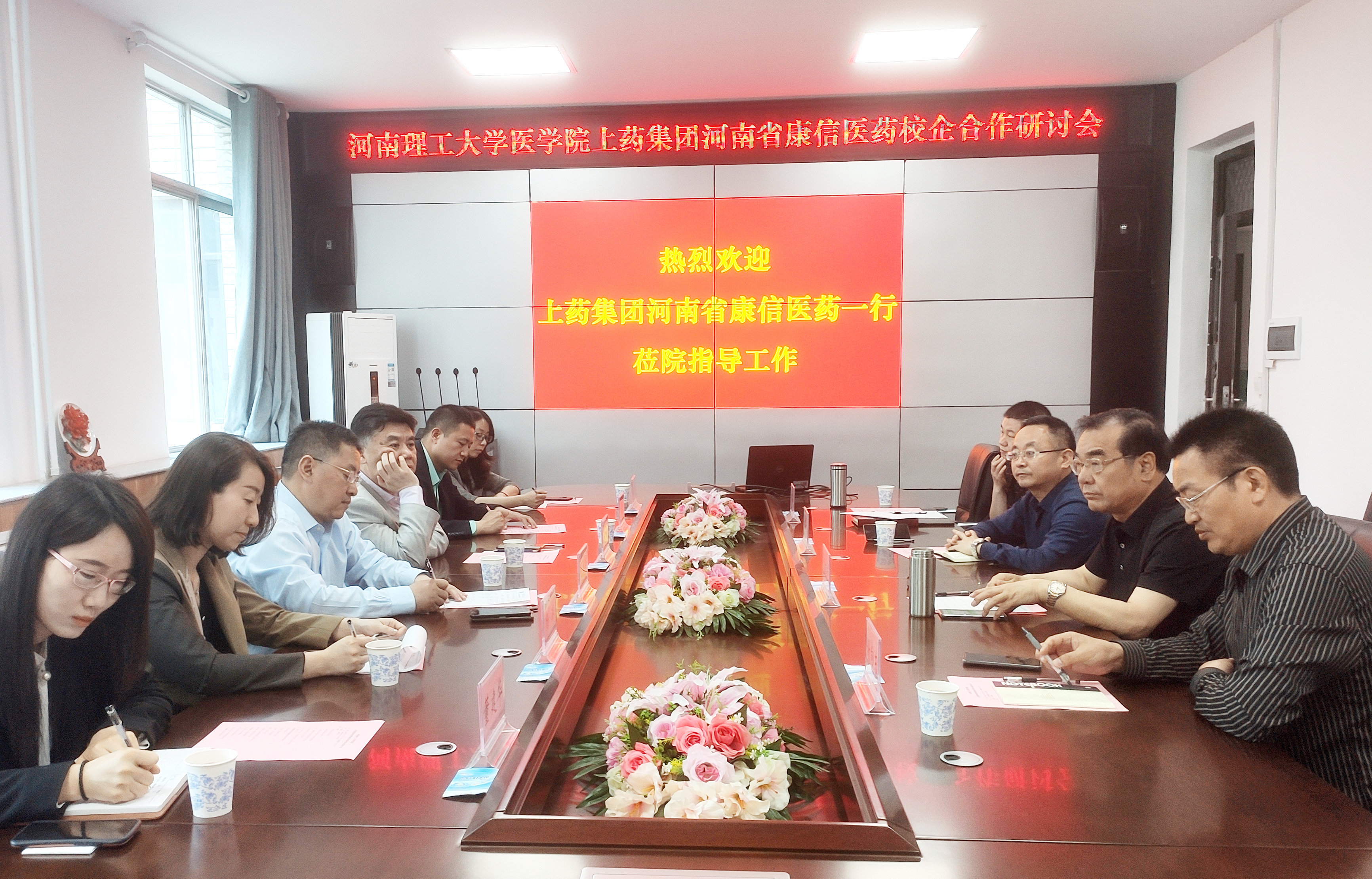 为进一步深化校企合作,推进产教深度融合,提高人才培养质量,5月13日上午,河南太阳成集团tyc122cc入口与上药集团河南省康信医药校企合作研讨会在医学院223会议室召开,上药集团河南省康信医药有限公司副董事长张伟、高级副总经理黄业贵、总经理助理于晓朴、业务总监杨洋、总经理助理兼人力资源总监刘美娜、战略运营部经理董建华、医学院原志庆院长、沈军生副院长、王振辉副院长、第一附属医院谢向东副院长出席。