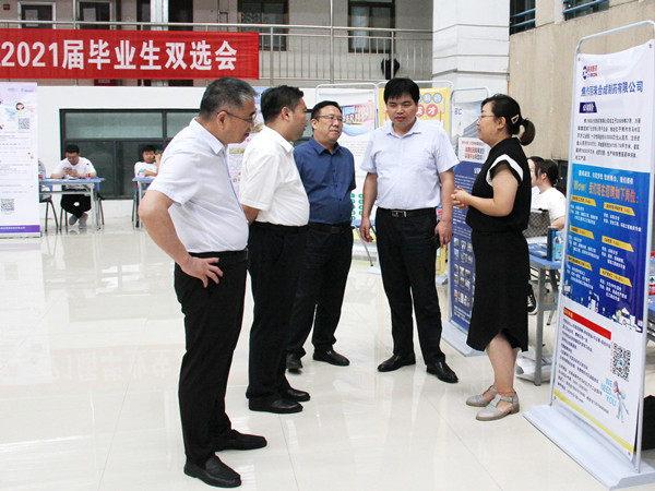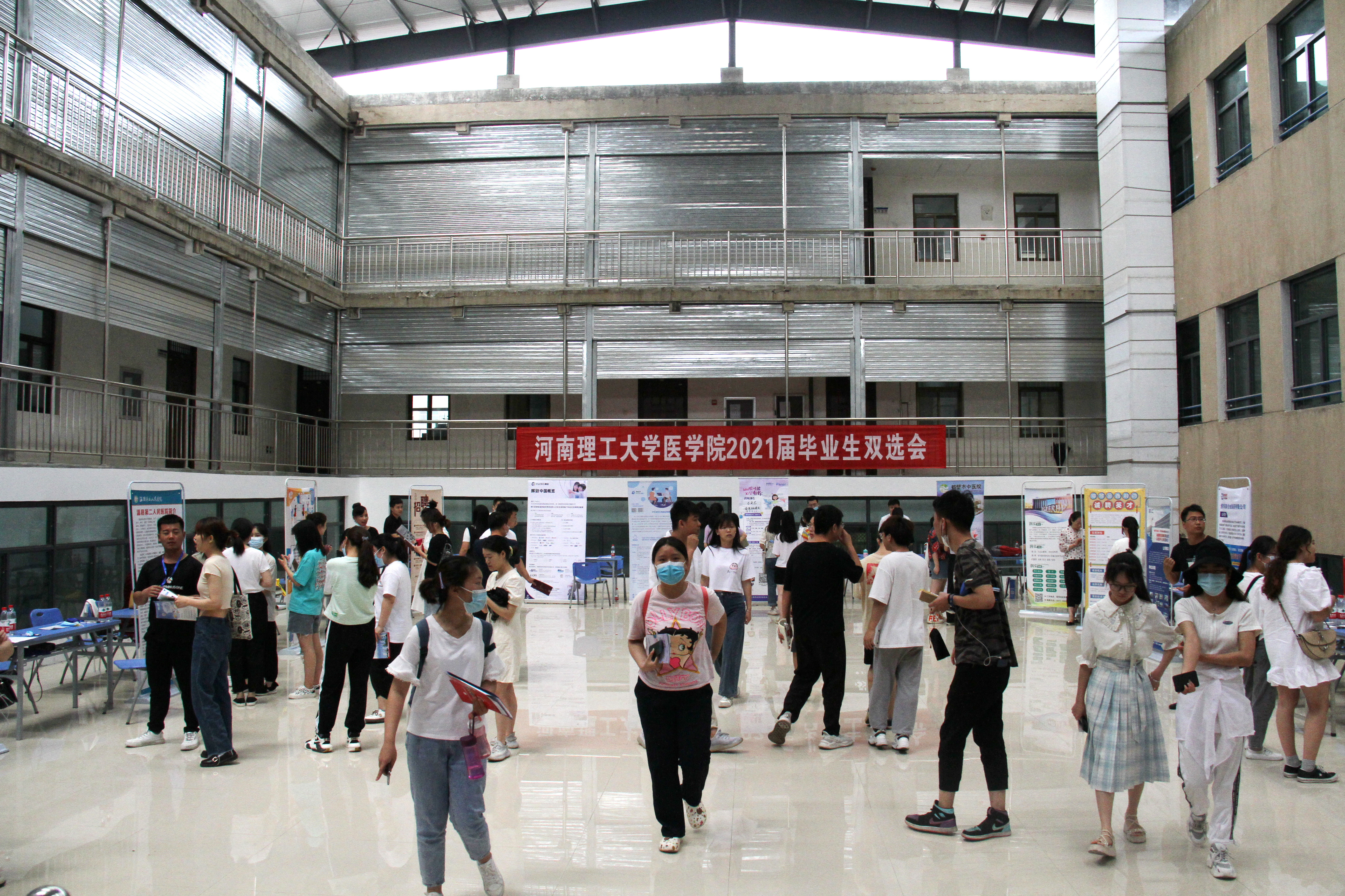 同时,医学院2021年度实习就业双选会在医学院第二实验楼二楼举行。在医学院相关系部的热情邀请下,本次双选会吸引了包括仲景宛西制药股份有限公司、上海药明津石医药科技有限公司、河南羚锐制药股份有限公司、焦作妇幼保健院、鹤壁市中医药、温县人民医院等在内的40余家省内外医药卫生类用人单位和20余家实习单位前来招揽人才。该院各专业未就业毕业生和在校将要参加实习的学生积极到会,了解企业需求,表达自己的求职意愿,不少同学当场与招聘单位初步达成就业和实习意向。本次实习就业双选会的筹办得到学校有关领导和职能部门的大力支持,副校长朱建光、招生就业处和教务处主要领导亲临双选会现场进行了指导。