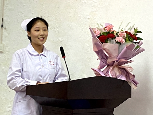 优秀学生代表仝祎冉在大会上发言,她表示:本次比赛的赛程设置及安排面面俱到,门类齐全,不同形式的比赛同时进行,多管齐下,在参与的过程中收获了成长,而赛场上的精彩纷呈与舞台后的刻苦磨练也让他们收获颇丰,最后还对他们的“真命老师”王蕾老师的言传身教表示了感谢。教师代表庞攀在发言中则引用习近平总书记的话提出了对学生的殷切希望:敬佑生命、救死扶伤、甘于奉献、大爱无疆!