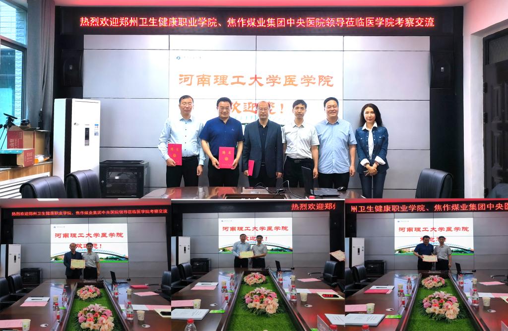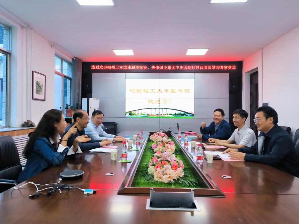 2023年5月27日上午,医学院与郑州卫生健康职业学院、焦作煤业集团中央医院在学院223会议室举行了合作洽谈会。参会人员有郑州卫生健康职业学院党委书记刘畅,工会主席徐玉惠、焦作煤业集团中央医院院长范波胜、河南太阳成集团tyc122cc入口党委书记张向锋、河南理工大学骨科研究所所长张雁儒、第一附属医院副院长谢向东。