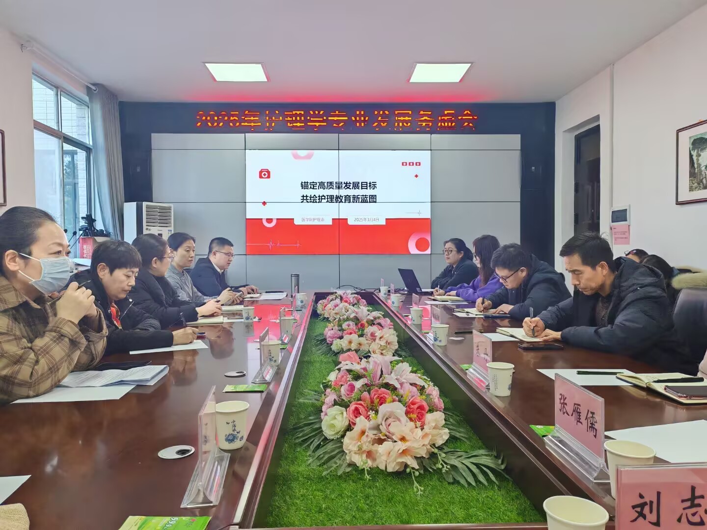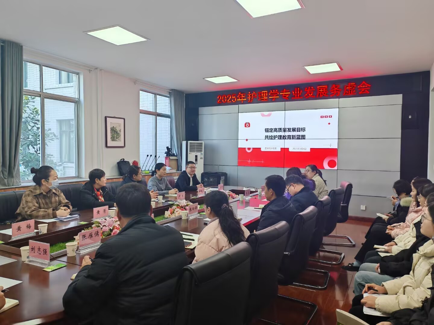 自由讨论阶段,现场气氛热烈。会议持续了三个小时,领导们、教师们围绕 “如何提升护理教学质量”“怎样加强护理专业学生的人文关怀素养培育” “申请护理学硕士点需要做哪些努力工作”“今后的发展规划如何进行”等关键议题各抒己见。
