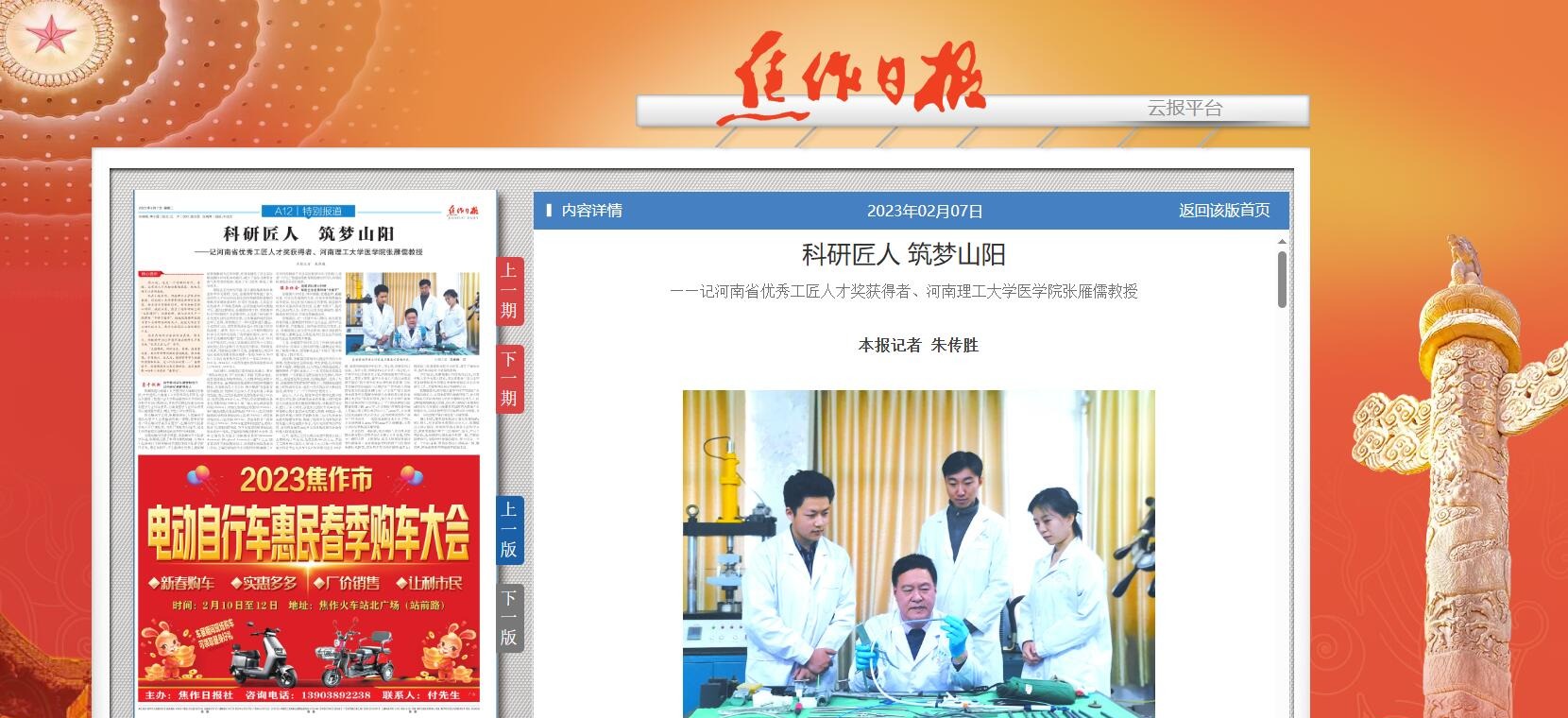 而在小城焦作,河南太阳成集团tyc122cc入口教授、河南理工大学骨科研究所所长张雁儒,却在这个浮躁的时代,甘坐冷板凳潜心科研、孜孜以求,磨出了他科研路上的“工匠精神”;刻苦钻研、深入企业生产一线解决“卡脖子技术”。他把理想播种在教书育人与科研创新的沃土,把论文写在了山阳大地之上,在平凡的岗位上书写精彩人生。
