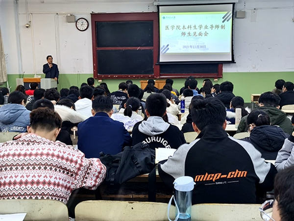 11月30日下午,2021级临床医学本科导师与学生见面会在第二教学楼2202教室召开。医学院执行院长原志庆及首届学业导师、106名2021级临床医学学生参加会议。会议由基础医学部主任邢秀玲主持。
