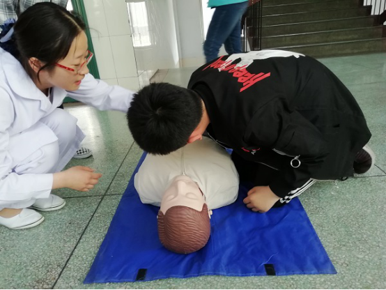 2019年4月16日,党日活动在焦作市实验中学正式开始,本次活动的主要内容是讲授心肺复苏技能,由党员代表进行理论讲授,同时结合操作演示,让同学们有更为深刻的印象。讲授过程中,学生们认真听讲,积极回答问题,理论知识与实际操作的结合极大的激发了学生们的好奇心和学习兴趣。讲解演示之后,由学生党支部党员对同学们进行实际操作一对一指导,使广大中学生掌握了心肺复苏这项重要急救方法的要领。
