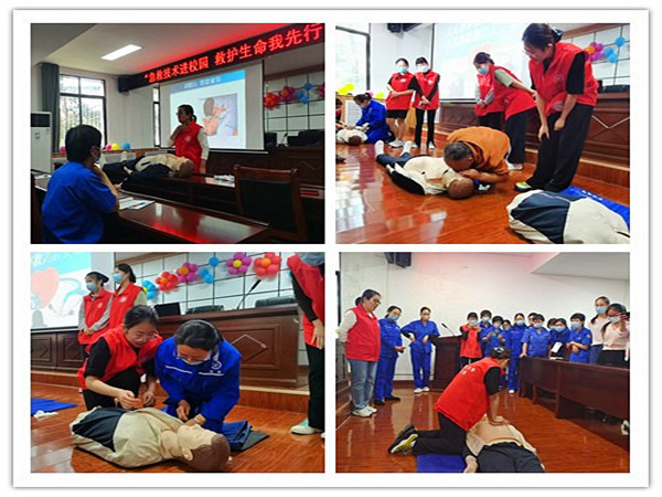 讲解结束后,由医学院青协学生志愿者。用模拟人完整演示急救操作过程。演示后,参加本次培训的学员们积极参与练习,学员们在志愿者的指导下,在模拟人上认真练习做心肺复苏技术,感受各步骤动作,加强了技能的学习和巩固。最后,学院为参与培训的人员发放了应急救援包。