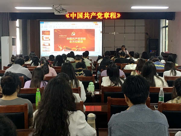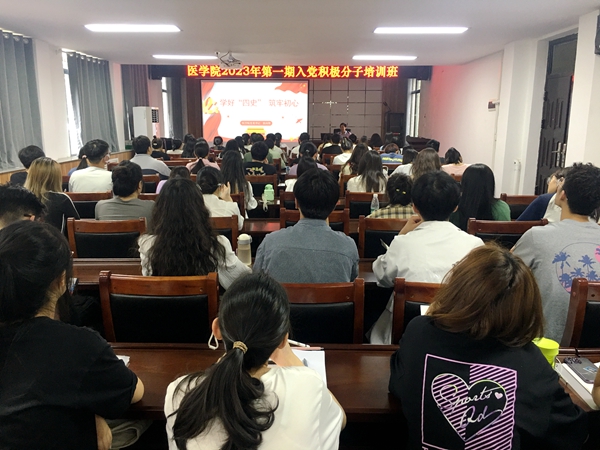 开班仪式后,张向锋以《学好“四史” 筑牢初心》为题从党史是中国共产党的领导不断走向成熟的实践史、新中国史是中国共产党推进建设新中国的实践史、改革开放史是中国共产党推进社会主义制度自我完善和发展的实践史、中国共产党是引领世界社会主义发展的重要政治力量、学好“四史”,牢记初心使命等五个方面为入党积极分子讲授第一节培训课程。第二节课程由护理系学生党支部书记齐蕊为学生讲授《中国共产党章程》,从党的性质和根本宗旨、党员的权利和义务、如何行动去争取早日入党等方面进行了详细讲解。第三、四节课程由专职组织员董明磊为学生讲授《坚定不移做好新时代意识形态工作》《党员发展流程和党员的教育管理》。集中授课结束以后,还将进行分组讨论、观看视频、撰写心得体会和结业考试等环节。
