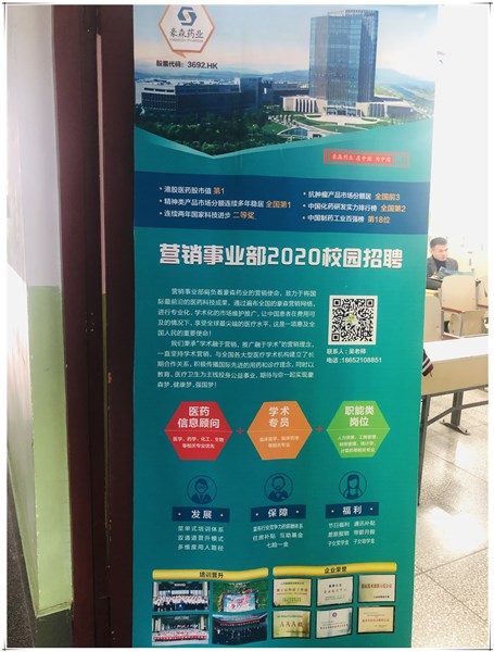 近日,江苏豪森药业集团专场招聘双选会在北校区二号教学楼2507教室顺利举行,我院2020届药学专业部份毕业生参加。
