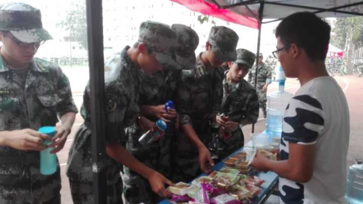 活动于九月十二日开始,地点设在北校区操场东南角,志愿者们提前搭好帐篷,放好纯净水,并且每日都安排值班人员,以便于及时解决问题。伴着新生们训练时洪亮的口号声,志愿者们也送出了一杯杯的纯净水以及热情的微笑。不少新生都对青协表示出了好奇和向往,志愿者们也耐心地一一为其解答疑惑,介绍青协。军训第四天,恰逢我国传统节日中秋节,考虑到军训期间无法回家与家人团圆过节,志愿者们特地购买了月饼发放给军训的学弟学妹以及同样辛苦的教官们。随着一声声的“谢谢”,志愿者们不禁感受到了亲人般的温暖。