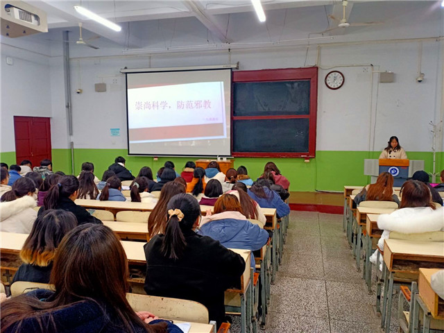 为进一步加强反邪教警示宣传教育,向广大青年学生普及反邪教知识,弘扬科学精神,提高学生对邪教本质和危害的认识,教育引导学生拒绝邪教、反对邪教,并主动远离邪教,我院于12月8日至14日在全体学生中开展了“崇尚科学 防范邪教”主题教育班会。班会通过主题演讲、知识竞赛等多种形式开展,进一步加强学生的爱党、爱国、爱社会主义教育,教育学生敢于揭露邪教本质和违法活动,拒绝校园传教和校外非法团体活动,以实际行动维护学校的安全稳定,推动平安校园建设。
