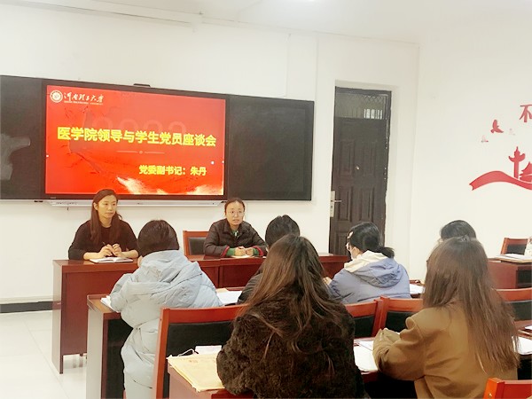 12月8日上午10点,在学院218党员活动室,我院党委副书记朱丹与学生第一党支部部分党员召开了一次别开生面的座谈会。此次座谈会旨在加强学生党员与院领导之间的交流沟通,探讨学院未来党建发展,共建平安和谐校园。