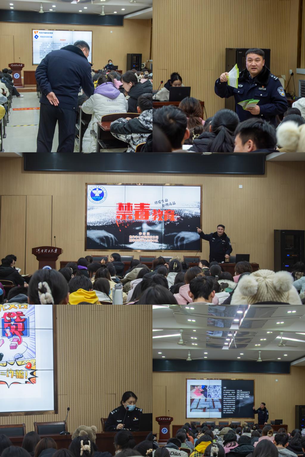 为打造平安校园,提高同学们防诈骗意识和禁毒意识,12月11日下午,医学院邀请焦作市公安局解放分局警官,在北校区学术报告厅举办“打造平安校园,享受健康人生”专题讲座,共有180余名师生到场参加。