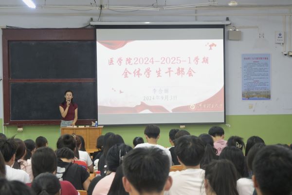 金秋启新程,医梦共翱翔。为进一步加强学生干部队伍建设,充分发挥学生干部的模范带头作用,保障新学期学院各项任务顺利进行,9月3日晚上,医学院团委书记李金丽在2102教室召开医学院新学期第一次全体学生干部会。