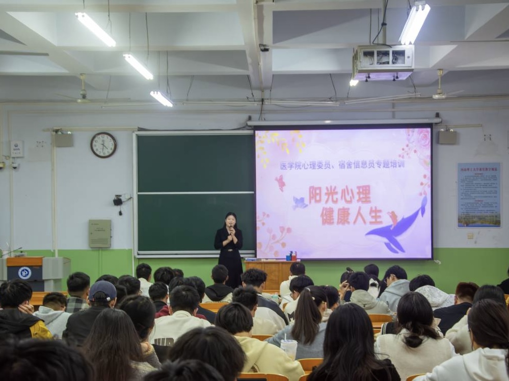 为充分发挥学生班级心理委员和宿舍信息员的积极作用,完善学校-学院-班级-宿舍四级心理健康教育工作网络,不断提升基层班干部日常事务管理能力,促进学生和谐相处、友爱互助,根据《中共河南省委教育工委办公室 河南省教育厅办公室关于开展2024年全省高校心理健康教育宣传周活动的通知》(豫教工委办〔2024〕37号)要求,10月29日下午,医学院组织开展班级心理委员、宿舍信息员专题培训活动。