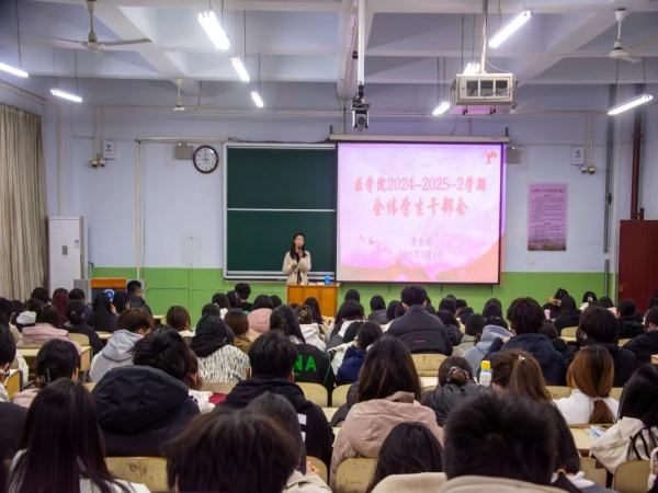 会议由医学院团委书记李金丽主持。她强调,新学期是新的起点,学院学生工作应紧密围绕学校中心任务,重点抓好思想引领、学风建设与社会实践,关注学生全面发展,着力打造特色鲜明、富有活力的学生工作品牌。学院将积极响应学校号召,结合自身实际,组织开展形式多样、内容丰富的学生活动,为同学们搭建更多展示自我、锻炼能力的平台。会议最后,李金丽老师对全体学生干部提出殷切期望:一要增强责任感和使命感,勇于担当、敢于创新;二要加强学习、提升能力,持续提高综合素质;三要团结协作、密切配合,凝聚工作合力。