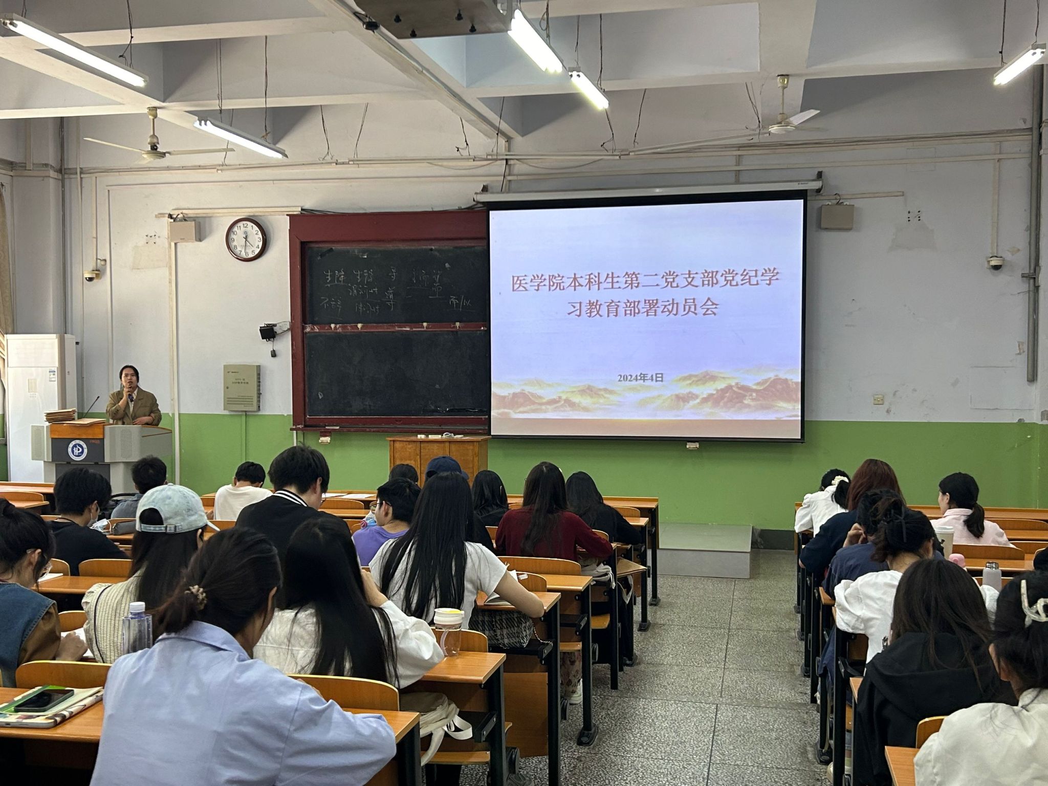 4月23日下午,医学院本科生第二党支部在第二教学楼2102教室召开党纪学习教育动员部署会。会议由本科生第二党支部书记罗讯主持,党支部全体党员参加会议。