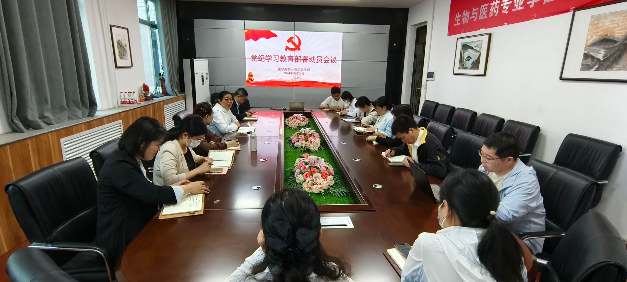 4月16日下午,医学院机关党支部在213会议室召开党纪学习教育动员部署会,部署医学院机关党支部党纪学习教育工作。机关党支部党员参会,医学院机关党支部书记作党纪学习教育工作部署讲话。