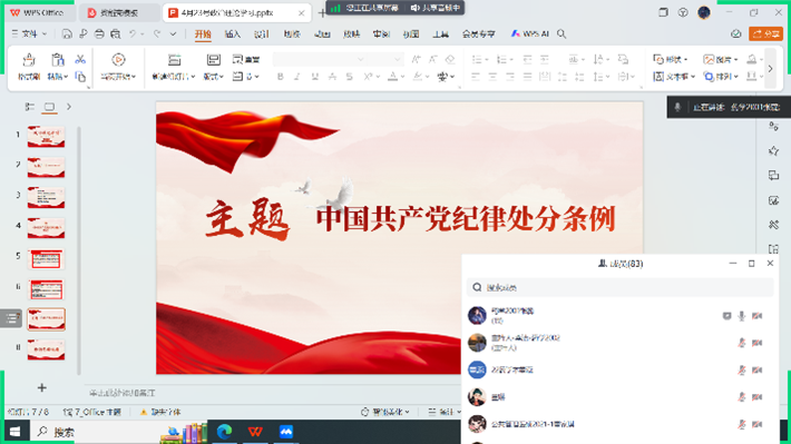 为了深入学习新修订的《中国共产党纪律处分条例》,强化党性教育、廉洁文化教育,增进党员之间的学习与交流,4月23日下午,本科生第一党支部采用线上形式在腾讯会议召开党纪学习教育动员部署会议,支部全体党员、预备党员参会,支部书记作党纪学习教育工作动员部署讲话。